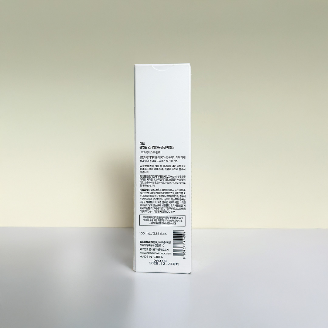 [Dabo All In One Snail 96 Mucin Essence 100 ml] Water, Allantoin, Panthenol, Arginine[CAUTIONS] 1. If the skin develops abnormal symptoms and side effects such as red spots, swelling, and itching while using the product, or if the application area develops the above symptoms afterexposure to direct sunlight, consult your dermatologist. 2. Do not apply on areas with open wounds. 3.Storage & handling ajkeep out of reach of children. b) keep away from direct sun-light