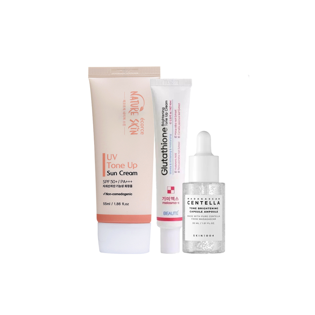 [Beaute Glutathione Brightening Tone Up Cream 45 ml] Glutathione (1000ppm): A potent antioxidant known for its skin-brightening properties. It helps in reducing dark spots and promoting a more even skin tone.Niacinamide: Also known as Vitamin B3, niacinamide enhances skin elasticity, improves the skin barrier function, evens out skin tone, and diminishes dullness.Arbutin: A natural skin-brightening agent that inhibits melanin production, thereby helping to lighten dark spots and hyperpigmentation.Centella Asiatica Extract: Known for its healing properties, it helps to soothe and repair the skin, making it ideal for sensitive or irritated skin.Camellia Sinensis (Green Tea) Leaf Extract: Offers antioxidant benefits and reduces inflammation, contributing to healthier-looking skin.
