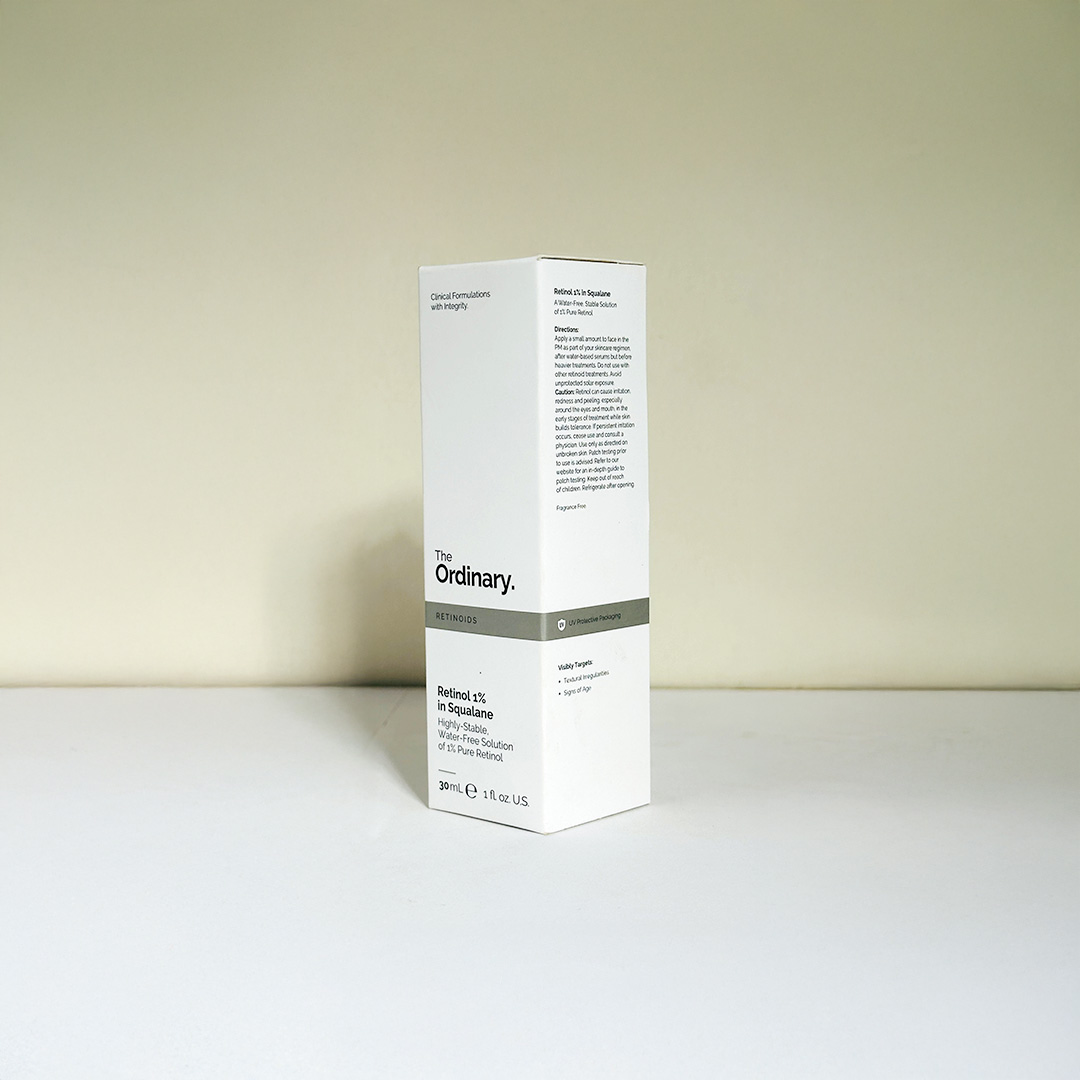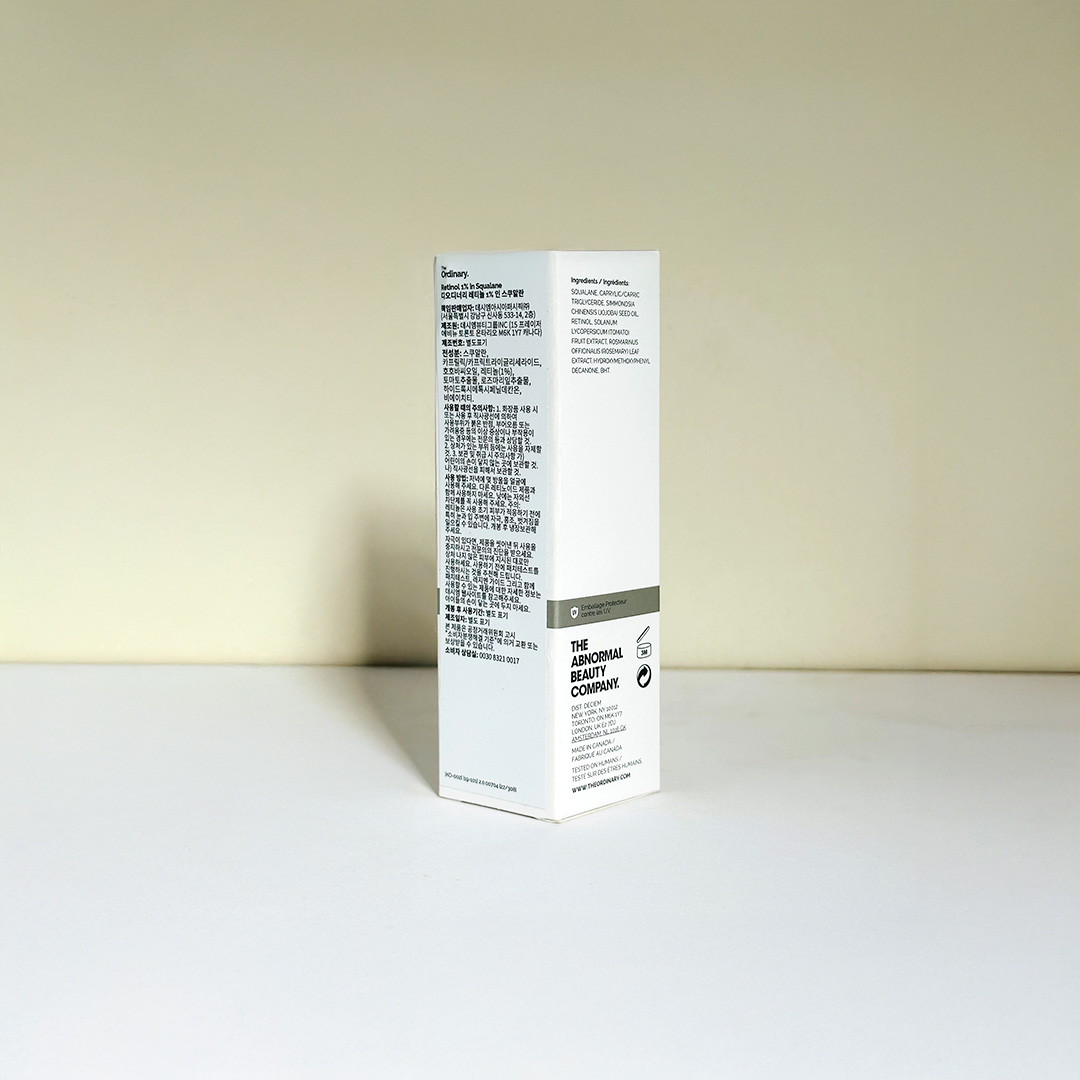 SQUALANE, CAPRYLIC/CAPRIC TRIGLYCERIDE, SIMMONDSIA CHINENSIS JOJOBA) SEED OIL RETINOL, SOLANUM LYCOPERSICUM (TOMATO) FRUIT EXTRACT, ROSMARINUS OFFICINALIS (ROSEMARY) LEAF EXTRACT, HYDROXYMETHOXYPHENYL DECANONE, BHT.