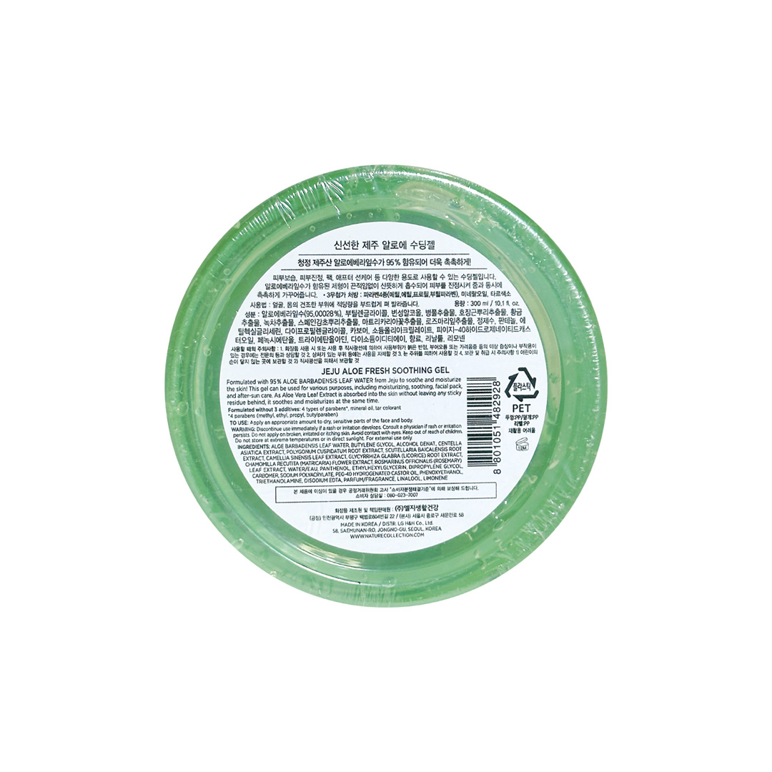 Aloe vera leaf extract (95,00028%), butylene glycol, denatured alcohol, centella asiatica extract, Korean knotweed root extract, golden extract, green tea extract, licorice root extract, matricaria flower extract, rosemary leaf extract, purified water, panthenol, ethylhexylglycerin, dipropylene glycol, carbomer, sodium polyacrylate, PEG-40 hydrogenated castor oil, phenoxyethanol, triethanolamine, disodium EDTA, fragrance, linalool, limonene